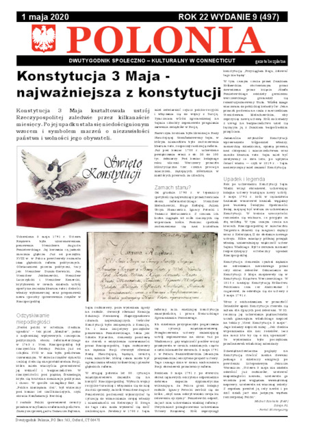 Polonia : Dwutygodnik Społeczno-Kulturalny w Connecticut 2020 R. 22 wyd. '9 (497), 1 maja