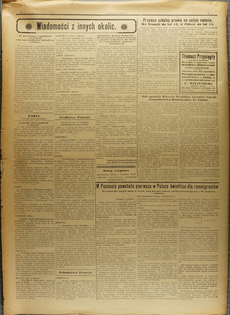 Opis: Dziennik wydawany w Lens. Podtytuł: Niezależny dziennik demokratyczny dla obrony socjalnych i kulturalnych interesów wychodźstwa. Wydawca: Michał Kwiatkowski. Red. Florjan Miedziński.