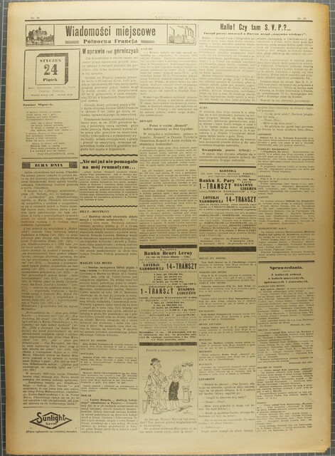 Opis: Dziennik wydawany w Lens. Podtytuł: Niezależny dziennik demokratyczny dla obrony socjalnych i kulturalnych interesów wychodźstwa. Wydawca: Michał Kwiatkowski. Red. Florjan Miedziński.