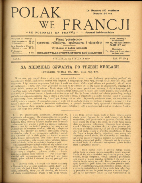 Polak we Francji = Le Polonais en France. No '4 (23 stycznia 1927)
