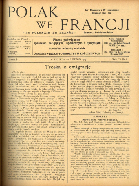 Polak we Francji = Le Polonais en France. No '8 (20 lutego 1927)