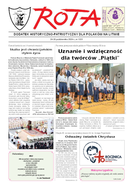 Rota : dodatek historyczno-patriotyczny dla Polaków na Litwie 2024.10.24-30 Nr 1331