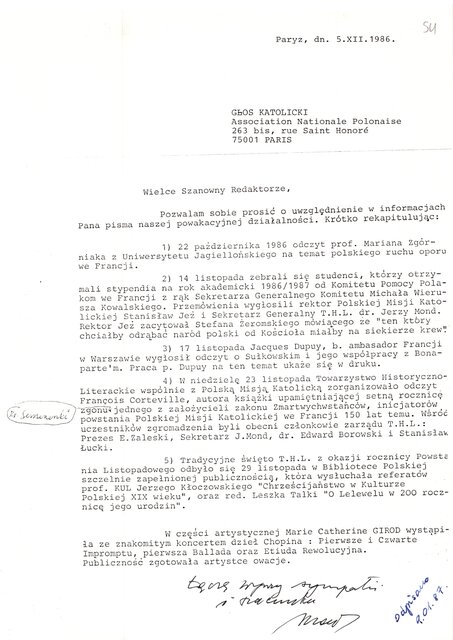 Kolekcja: | Archiwa > Archiwum Polskiej Misji Katolickiej we Francji > Zespół 46. Archiwum "Głosu Katolickiego" > 14. Korespondencja 1986 |