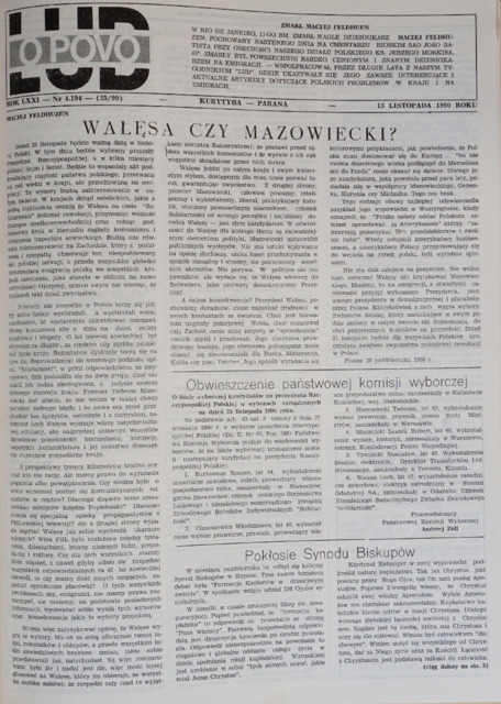 Opis: Wydanie w języku polskim i portugalskim, z tym samym oznaczeniem wydania. Dwutygodnik Katolicki Społeczno-Kulturalny założony w 1920 = Unico Jornal Polones no Brasil Fundado em 1920. Red.: Jorge Morkis