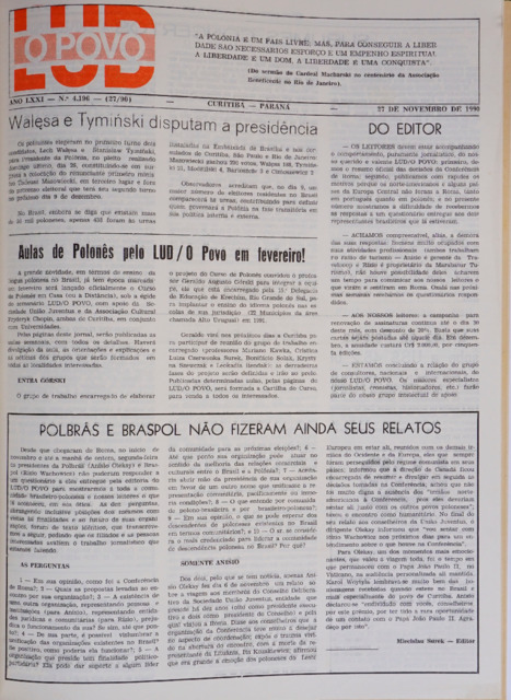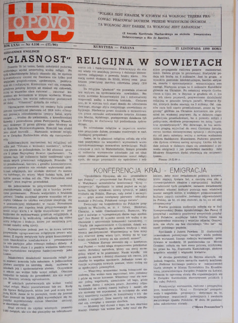 Opis: Wydanie w języku polskim i portugalskim, z tym samym oznaczeniem wydania. Dwutygodnik Katolicki Społeczno-Kulturalny założony w 1920 = Unico Jornal Polones no Brasil Fundado em 1920. Red.: Jorge Morkis