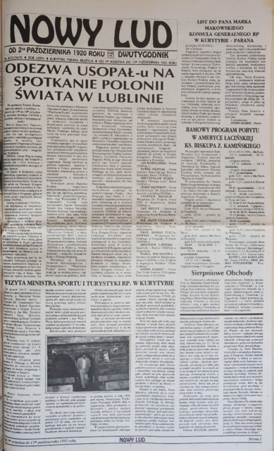 Opis: Nowy Lud = Nova Gente. Dwytygodnik. Redaktor: ks. Jorge Morkis. Kurytyba, Paraná, Brazylia.