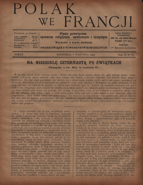 Słowa kluczowe: Tygodnik ; Gazeta ; Czasopismo polonijne ; Francja ; Paryż ; Henryk Łubieński ; Société Générale d'Imprimerie et d'Edition ; Ogólne Towarzystwo Druku i Wydawnictw ; Paul Neveu