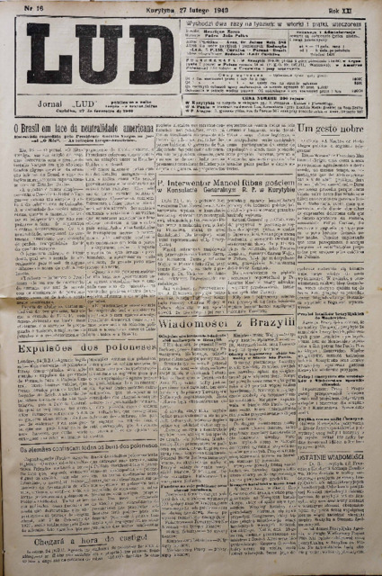 Słowa kluczowe: Prasa ; Brazylia ; Brasil ; Lud ; Curitiba ; Kurytyba ; Paraná ; Lud 1940