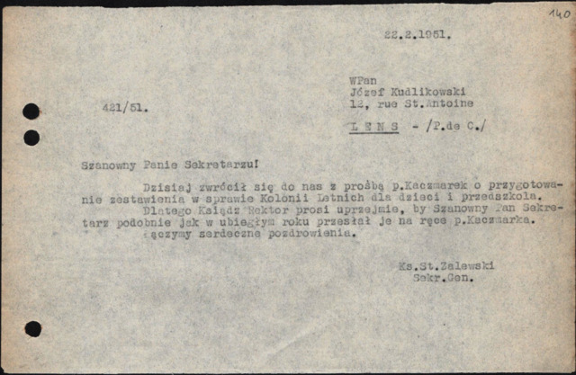 | Opis: | Pismo S. Zalewskiego do J. Kudlikowskiego dot. kolonii letnich dla dzieci i młodzieży. |
