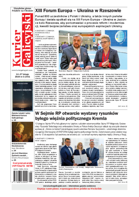 Opis: | Dwutygodnik wydawany we Lwowie. Wydawca: Stowarzyszenie "Kurier Galicyjski". Red. nacz.: Wojciech Jankowski. Projekt finansowany ze środków Kancelarii Prezesa Rady Ministrów w ramach zadania publicznego dotyczącego pomocy Polonii i Polakom za granicą. Projekt "Polska Platforma Medialna Ukraina" Fundacji Wolność i Demokracja. |