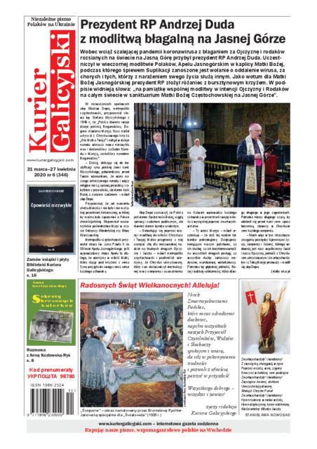 Nowy Kurier Galicyjski : niezależne pismo Polaków na Ukrainie 2020.03.31-04.27 Nr 6 (346)