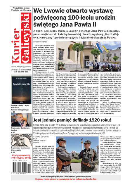 Nowy Kurier Galicyjski : niezależne pismo Polaków na Ukrainie 2020.05.29-06.15 Nr 9-10 (349-350)