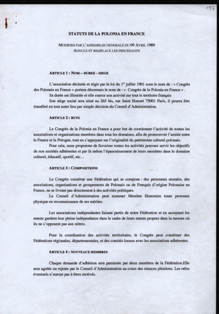 | Opis: | Statuts de la Polonia en France (09.04.1989). |