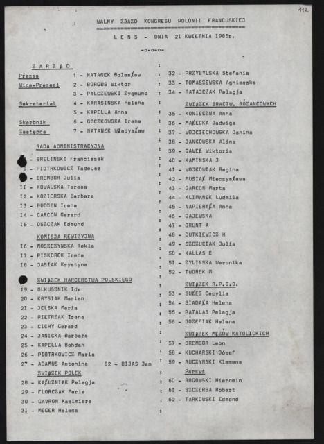 | Opis: | Walny Zjazd Kongresu Polonii Francuskiej. Lens, 21 kwietnia 1985 r. [lista organizacji i ich przedstawicieli]. |