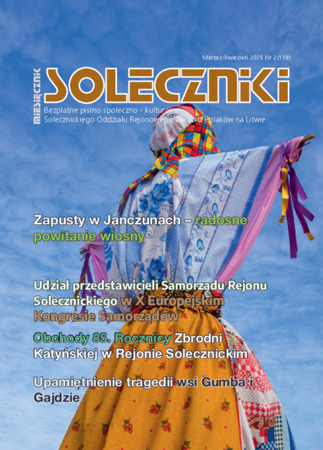 Opis: Wydawca: Solecznicki Oddział Rejonowego Związku Polaków na Litwie. Zespół red.: Katarzyna Biersztańska [i.in.]. Zadanie współfinansowane ze środków Kancelarii Senatu w ramach sprawowania opieki Senatu Rzeczypospolitej Polskiej nad Polonią i Polakami za granicą w 2025 roku.