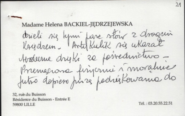 Opis: | Niedatowany list H. Backiel-Jędrzejewskiej. |