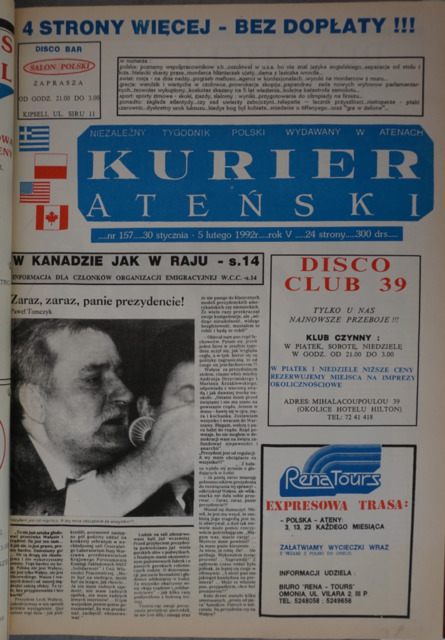 Kurier Ateński : niezależny tygodnik polski wydawany w Atenach 1992.01.30-02.05 R. 5 nr 157