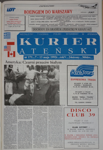 Kurier Ateński : niezależny tygodnik polski wydawany w Atenach 1992.05.07-13 R. 5 nr 171