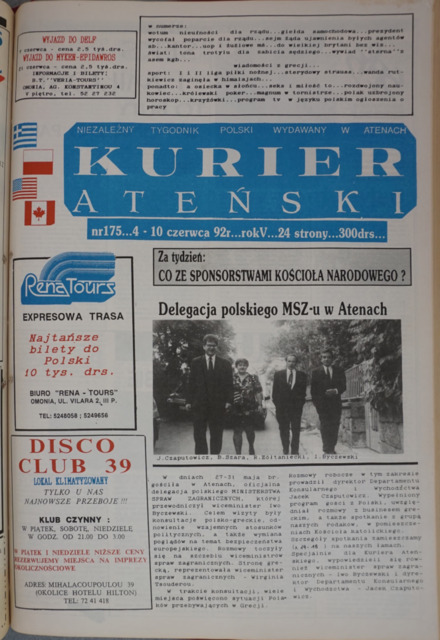Kurier Ateński : niezależny tygodnik polski wydawany w Atenach 1992.06.04-10 R. 5 nr 175