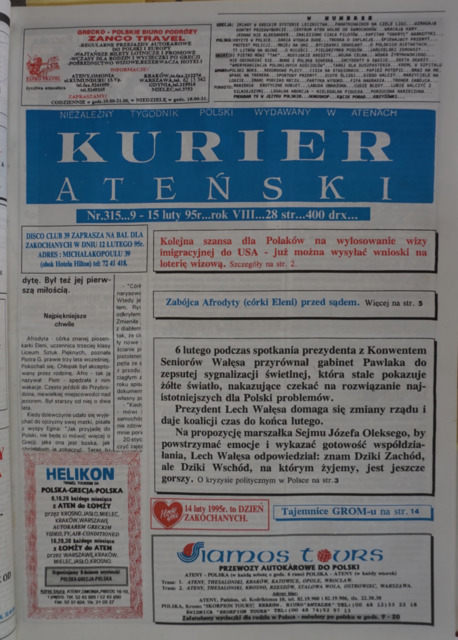 Kurier Ateński : niezależny tygodnik polski wydawany w Atenach 1995.02.09-15 R. 8 nr 315