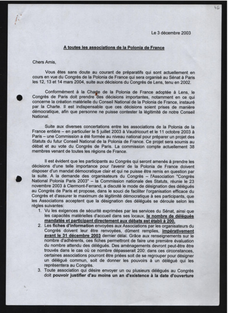 Opis: | Commission nationale des Statuts du futur Conseil National de la Polonia Paris de France, A toutes les associations de la Polonia en France, 03.12.2003. |