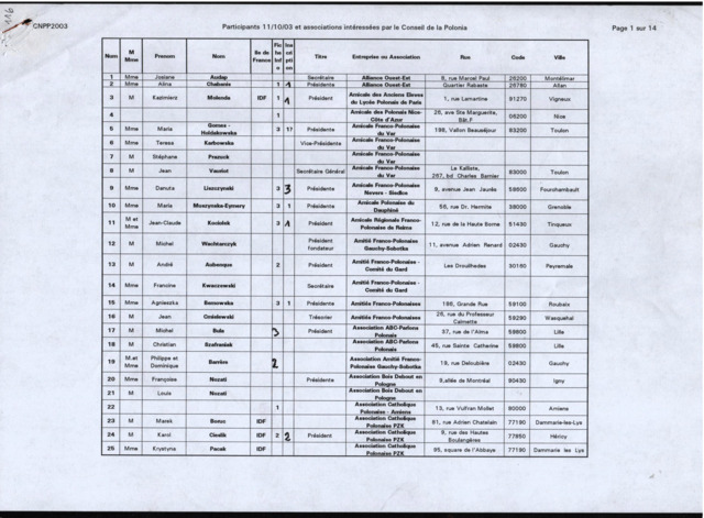 Opis: | Participants 11/10/03 et associations interesses par le Conseil de la Polonia. |