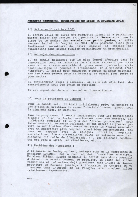 Opis: | BDS, Quelques remarques, suggestions ou idees (6 novembre 2003). |