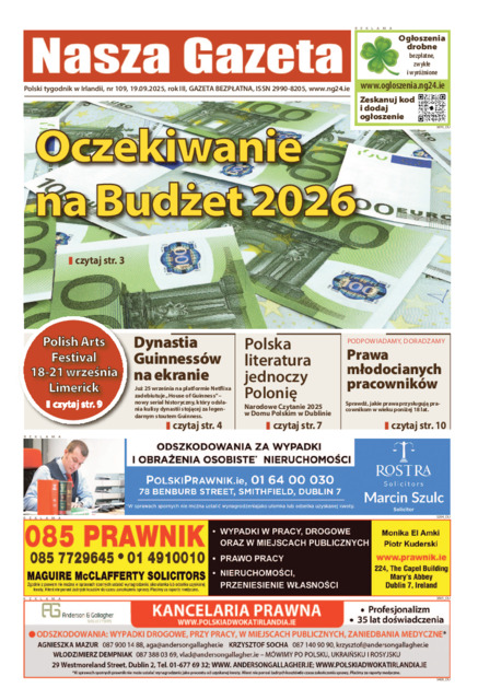Nasza Gazeta : polski tygodnik w Irlandii. 2025.09.19 R. 3 nr 109