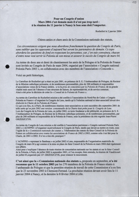 Kolekcja: | Archiwa > Archiwum Polskiej Misji Katolickiej we Francji > Zespół 5. Kongres Polonii Francuskiej > 10. Statuty, zebrania, kongresy 2004-2005 |