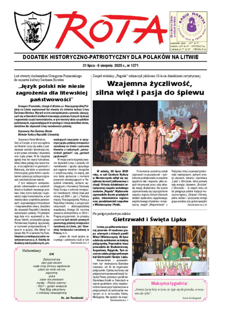 Rota : dodatek historyczno-patriotyczny dla Polaków na Litwie 2025.07.31-08.06 Nr 1371