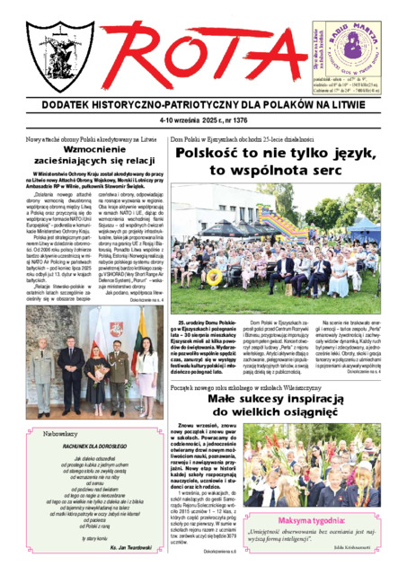 Rota : dodatek historyczno-patriotyczny dla Polaków na Litwie 2025.09.04-10 Nr 1376