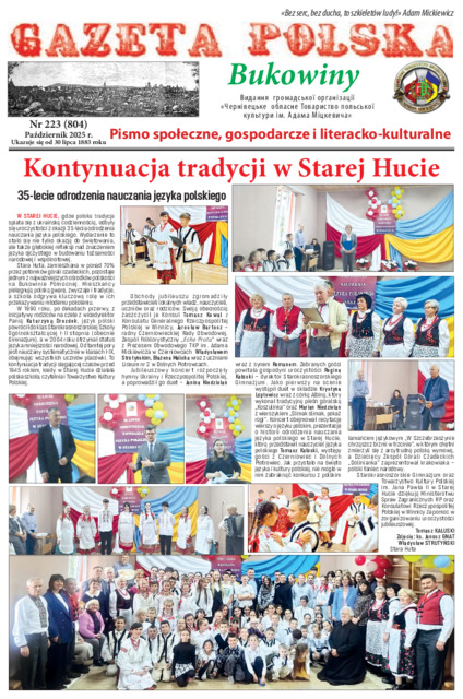 Gazeta Polska Bukowiny = Hazeta polska Bukovyny 2025.10 Nr 223 (804)