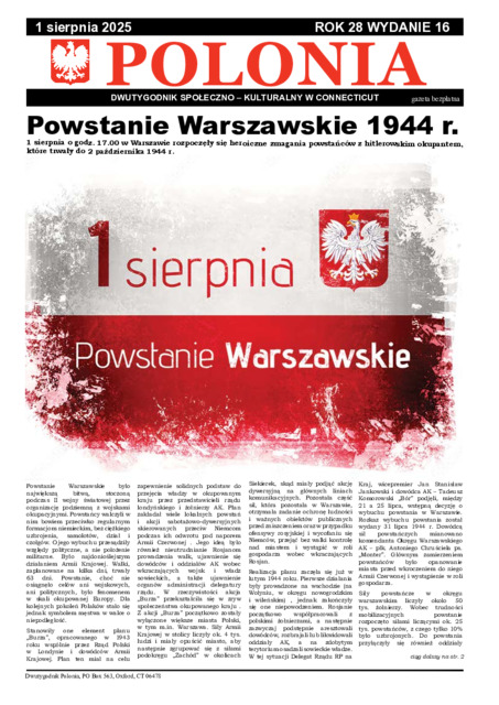 Polonia : dwutygodnik społeczno-kulturalny w Connecticut 2025.08.01 R. 28 Nr 16