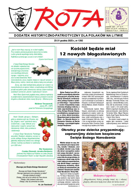 Rota : dodatek historyczno-patriotyczny dla Polaków na Litwie 2025.12.25-31 Nr 1392