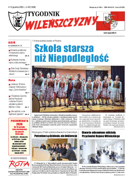 Tygodnik Wileńszczyzny 2025.12.04-10 Nr 49 (1639)