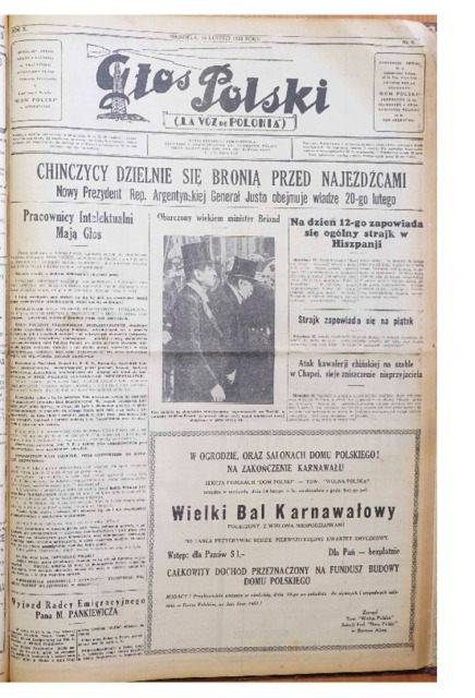 Słowa kluczowe: Prasa ; Argentyna ; Argentina ; Głos Polski ; Buenos Aires