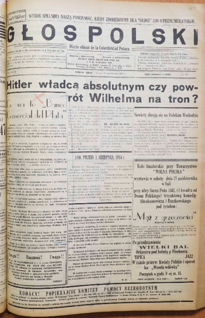 Głos Polski : Diario oficial de la Colectividad Polaca. R. 12: No. 834 (17 października 1933)