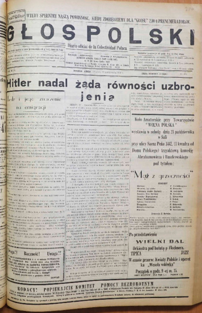 Głos Polski : Diario oficial de la Colectividad Polaca. R. 12: No. 836 (19 października 1933)