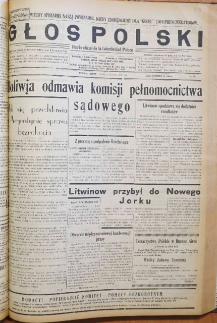 Słowa kluczowe: Prasa ; Argentyna ; Argentina ; Głos Polski ; Buenos Aires