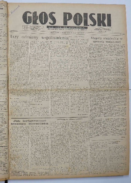 Słowa kluczowe: Prasa ; Argentyna ; Argentina ; Głos Polski ; Buenos Aires