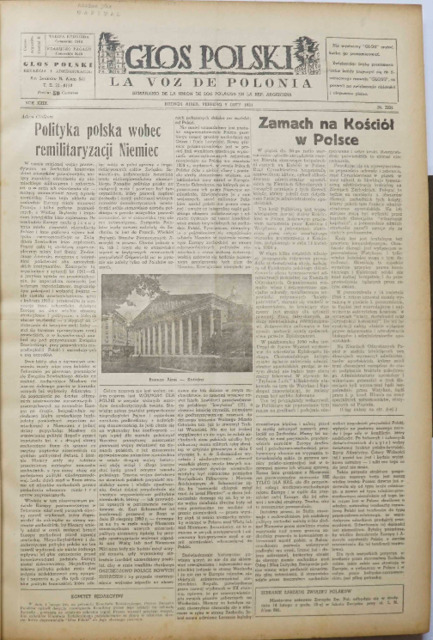 Głos Polski = La Voz de Polonia : Semanario de la Unión de los Polacos en la República Argentina. R. 29: No. 2238 (Febrero, 9 lutego 1951)