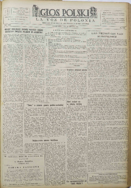 Głos Polski = La Voz de Polonia : Semanario de la Unión de los Polacos en la República Argentina. R. 29: No. 2256 (Junio, 15 czerwca 1951)