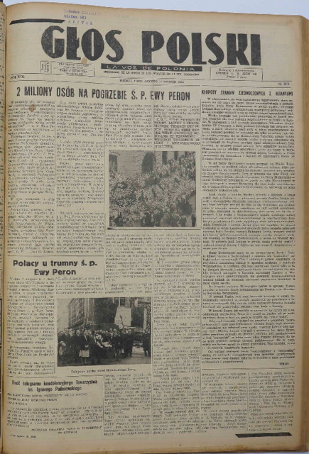 Głos Polski = La Voz de Polonia : Semanario de la Unión de los Polacos en la República Argentina. R. 30: No. 2316 (Agosto, 15 sierpnia 1952)