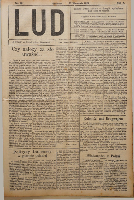Słowa kluczowe: Prasa ; Brazylia ; Brasil ; Lud ; Curitiba ; Kurytyba ; Paraná