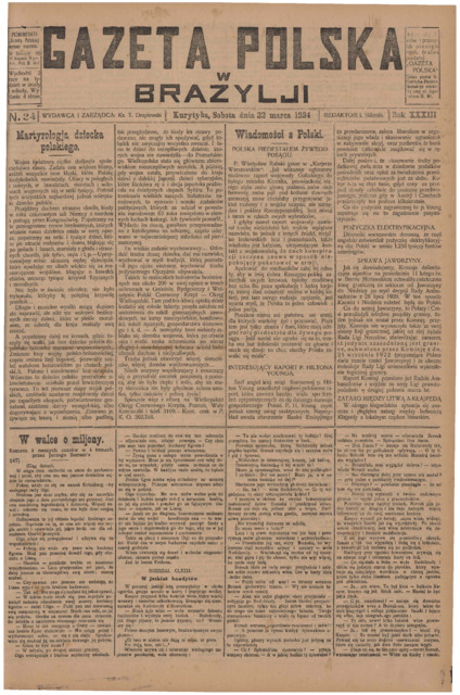 Słowa kluczowe: Prasa ; Brazylia ; Gazeta Polska w Brazylii; Kurytyba ; Curitiba ; Drapiewski ; Sklarski