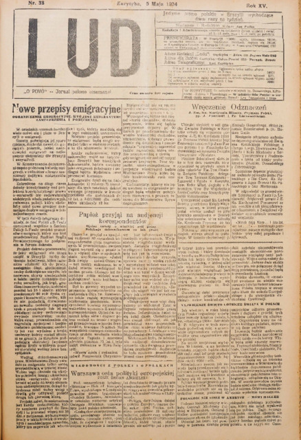 Opis: Wydawca i redaktor: ks. Jan Pałka. "Lud" wychodził dwa razy na tydzień.
