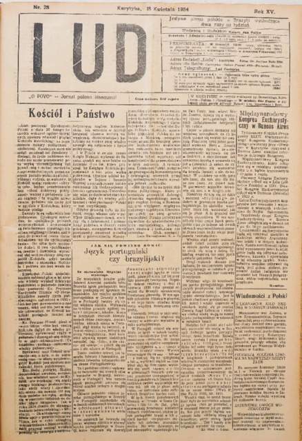Słowa kluczowe: Prasa ; Brazylia ; Brasil ; Lud ; Curitiba ; Kurytyba ; Paraná