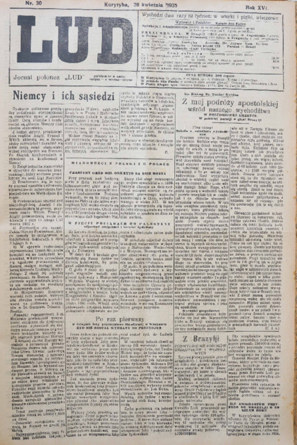 Opis: Wydawca i redaktor: ks. Jan Pałka. "Lud" wychodził dwa razy na tydzień.