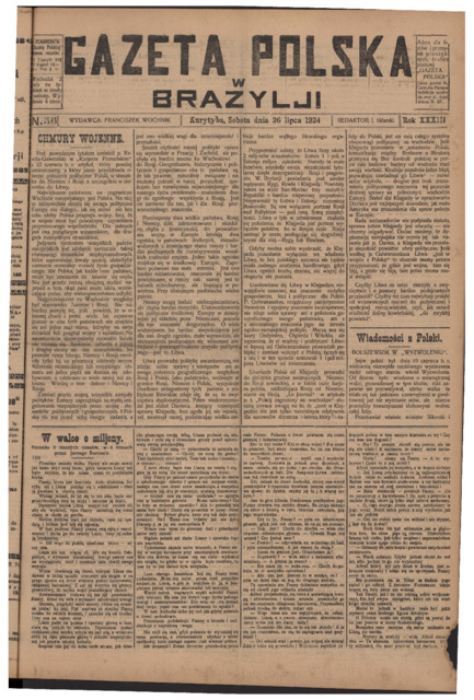 Kolekcja: Prasa > Gazeta Polska w Brazylii > 1924
