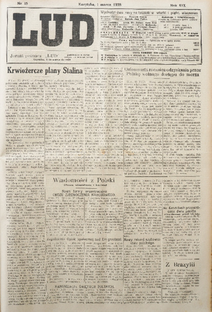 Słowa kluczowe: Prasa ; Brazylia ; Brasil ; Lud ; Curitiba ; Kurytyba ; Paraná ; Lud 1938